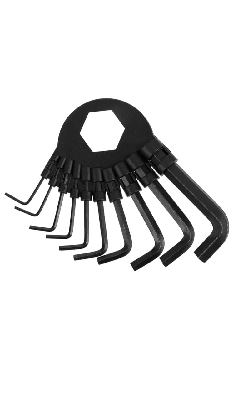 - 8-piece long-arm allen key set for quickly tightening or loosening fasteners; standard and metric sizes